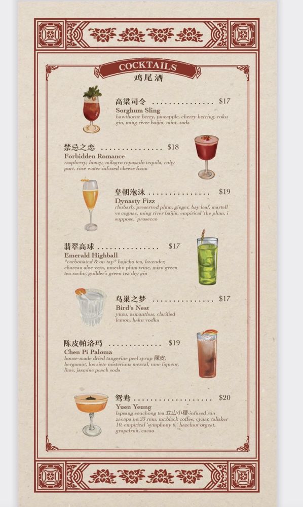 Welcome to Red Sorghum 夜宴, a classy Chinese restaurant located in LIC, New York. This gem offers a variety of traditional Chinese dishes with a modern twist, perfect for a night out with friends or a special date. From the mouthwatering chicken to the spicy beef and tripe medley, each dish is bursting with authentic flavors that will leave your taste buds satisfied. Don't miss out on their signature cocktails like the Forbidden Romance and Birds Nest, which perfectly complement the bold and flavorful dishes. With excellent service, a chic ambiance, and rave reviews from customers, Red Sorghum is a must-visit for anyone craving an unforgettable dining experience.